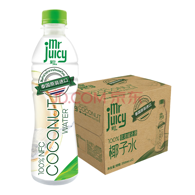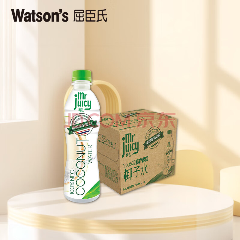 屈臣氏(Watsons)100%纯椰子水NFC果汁泰国原装进口椰汁水饮料350mL*12瓶整箱