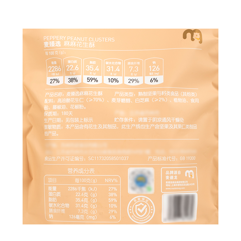 麦臻选麻麻花生酥 500g