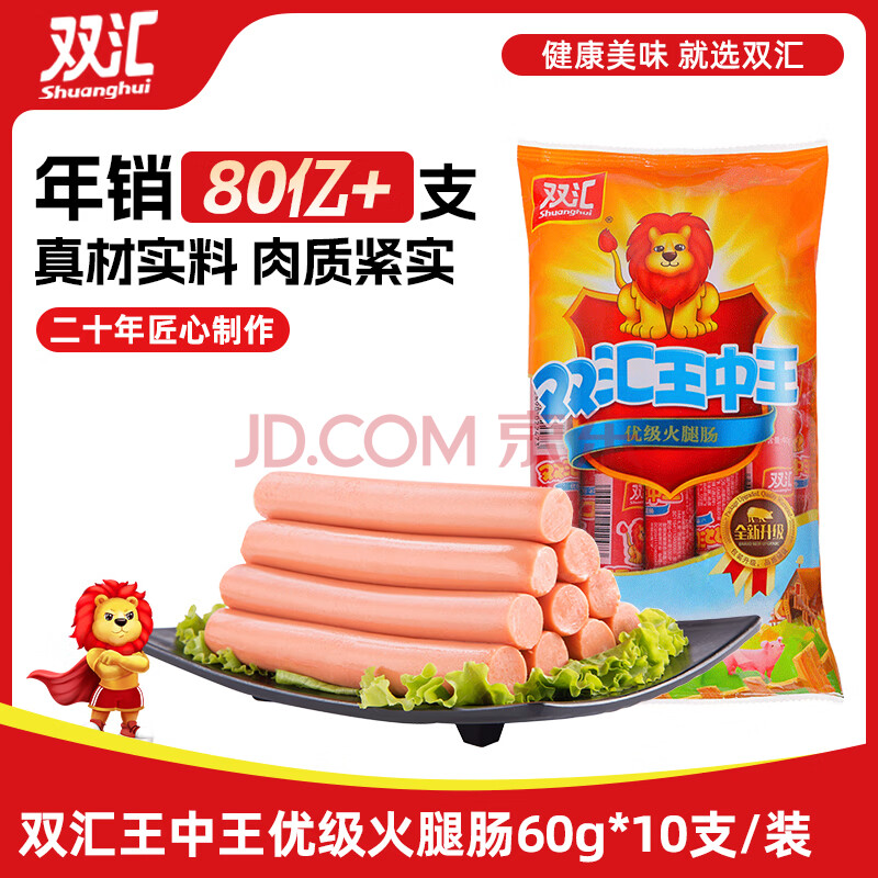 双汇 王中王火腿肠 60g*10支/袋 休闲零食 即食 香肠火腿 露营 出游