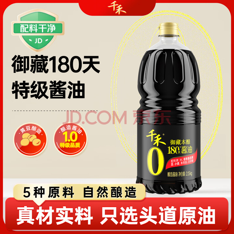 千禾御藏本酿 180天酱油 2.15Kg【0添加特级生抽】酿造炒菜提鲜