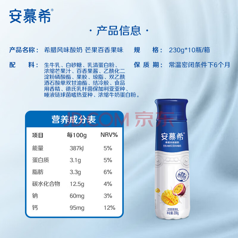 伊利安慕希芒果百香果风味酸奶230g*10瓶 礼盒装