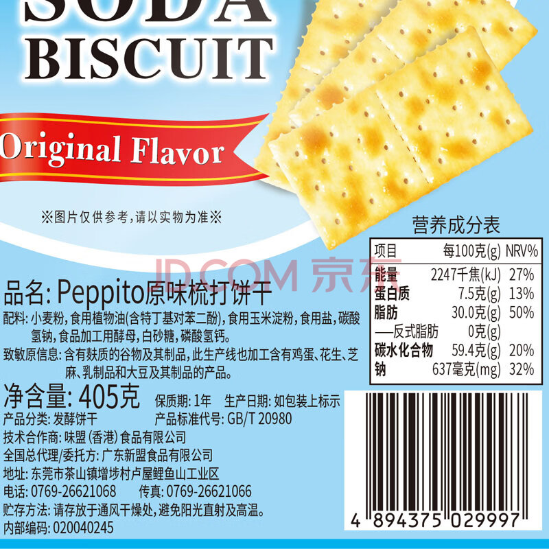 peppito原味苏打饼干405g碱性孕妇充饥解馋饱腹梳打独立装节日休闲零食