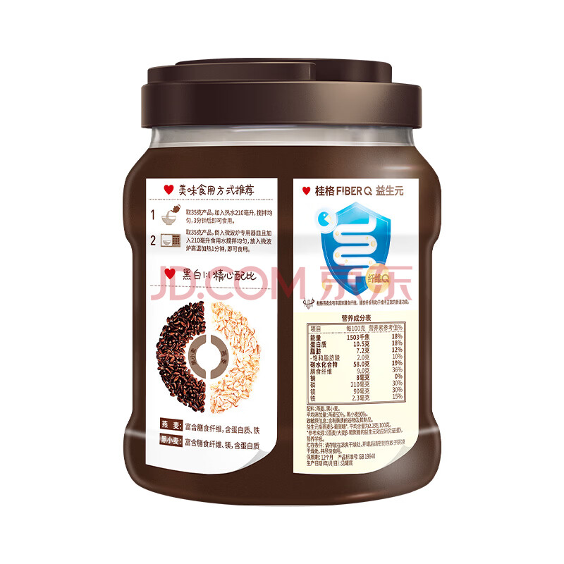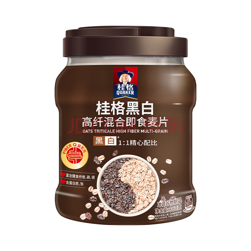 桂格(QUAKER)黑白即食燕麦片860克 营养早餐 膳食纤维 零添加白砂糖