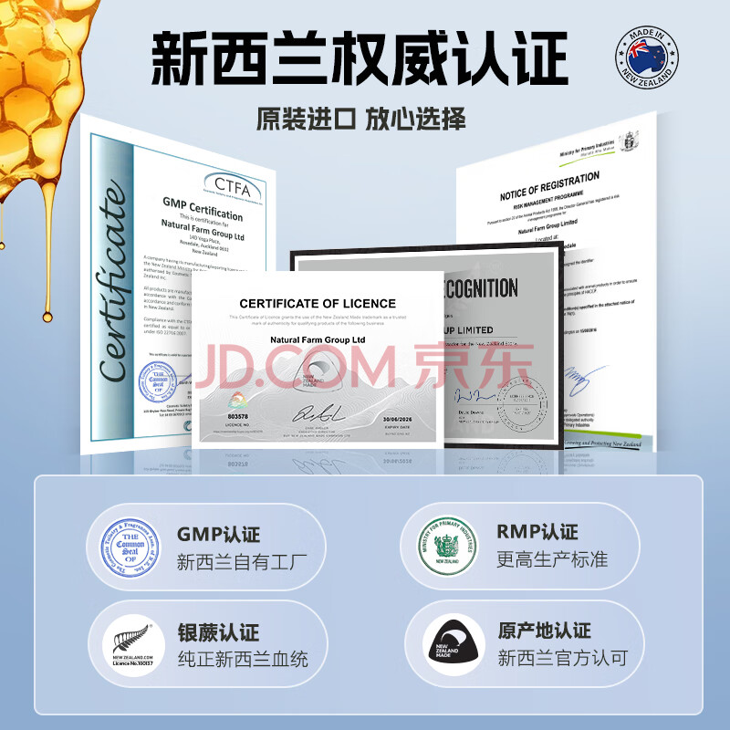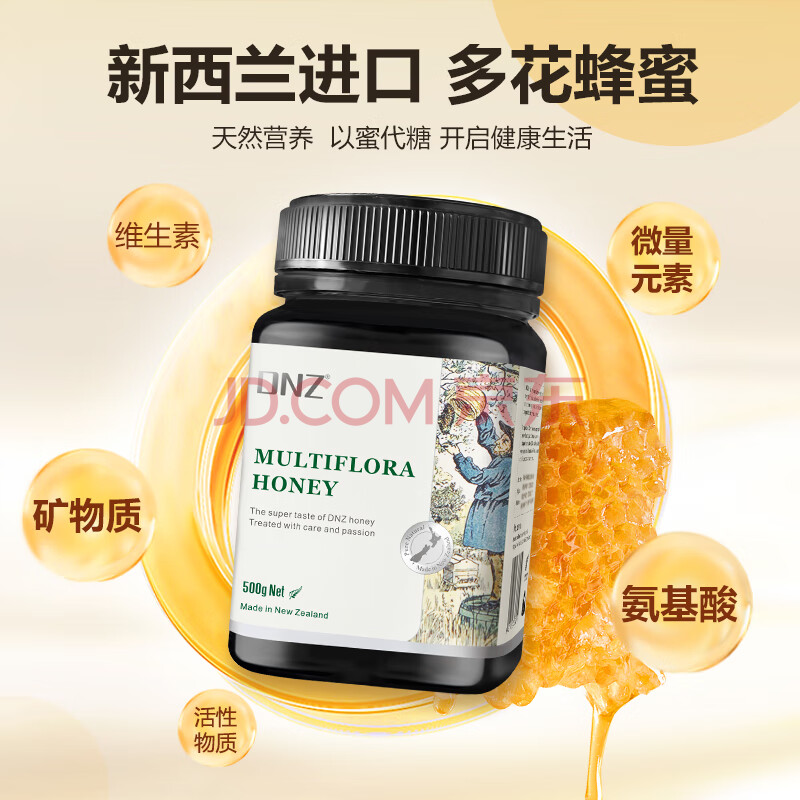 DNZ新西兰进口天然成熟多花百花纯蜂蜜500g天然滋补品送长辈节日礼品