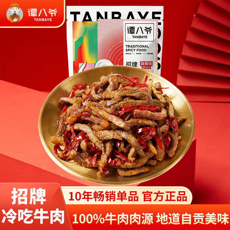 谭八爷 冷吃牛肉120g*2 微辣味肉干麻辣零食牛肉条四川特产即食源头直发