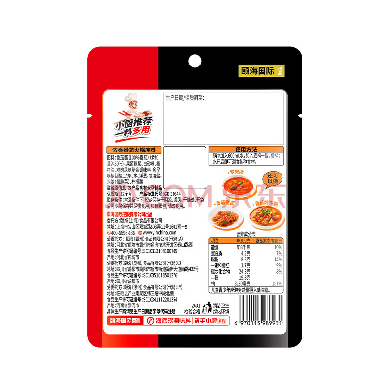 海底捞 火锅底料 浓香番茄125g一人食火锅底料 麻辣烫香锅冒菜干锅串串