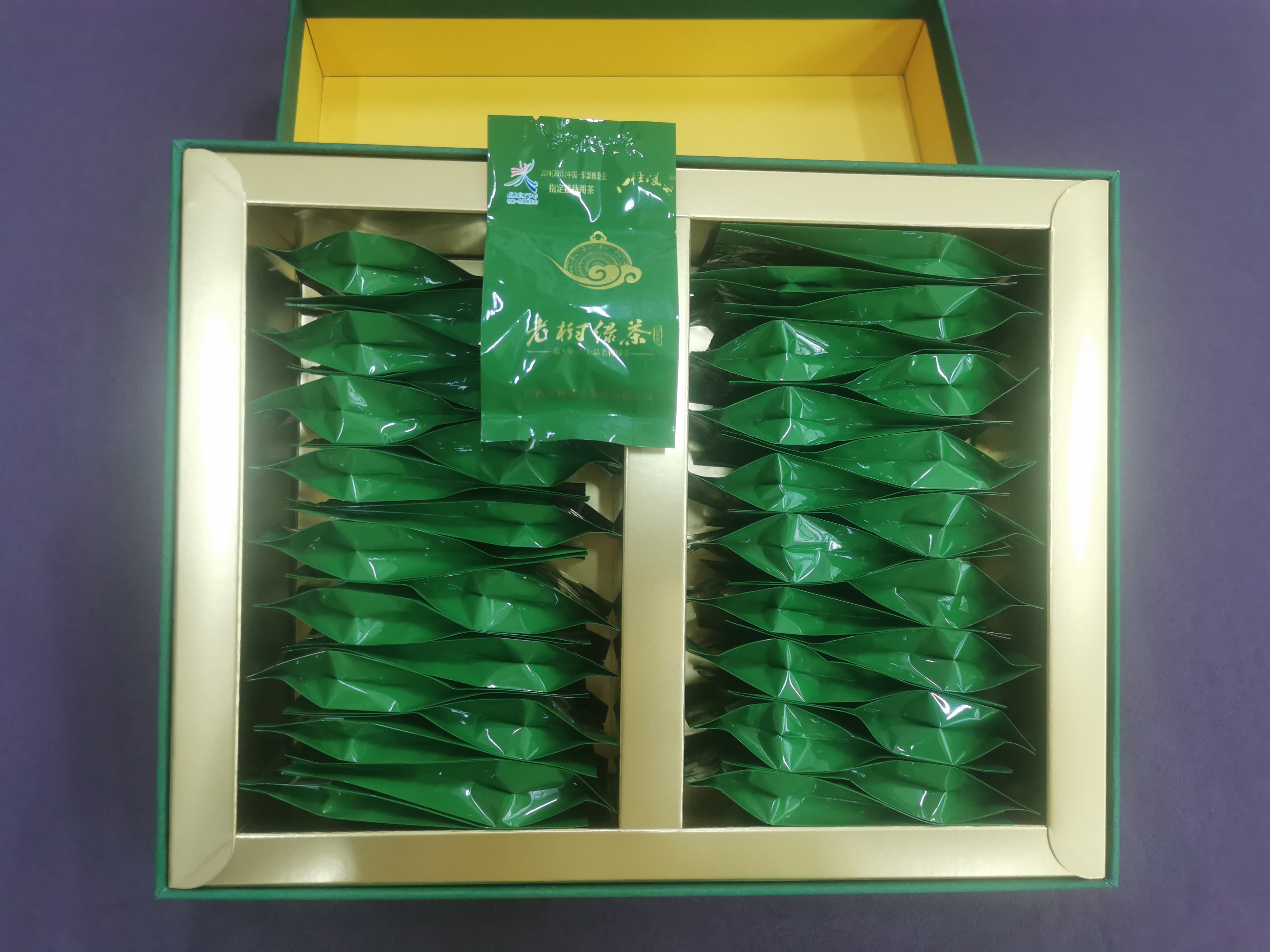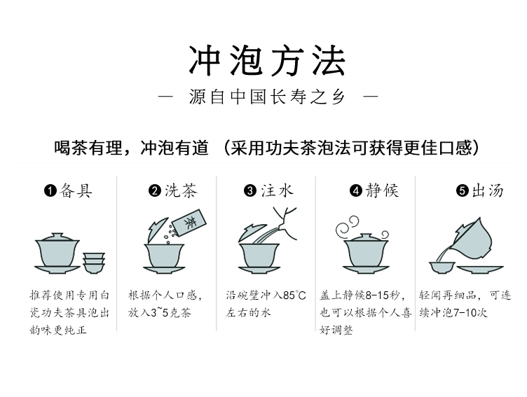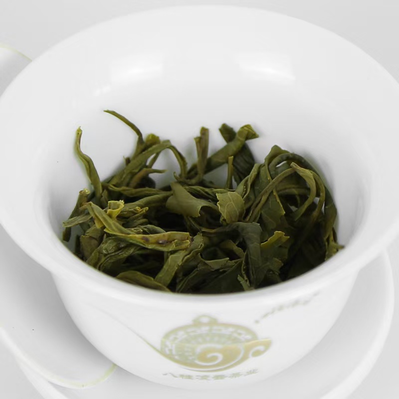 茶叶条形紧结,汤色绿黄明亮,浓郁持久,滋味鲜爽甘